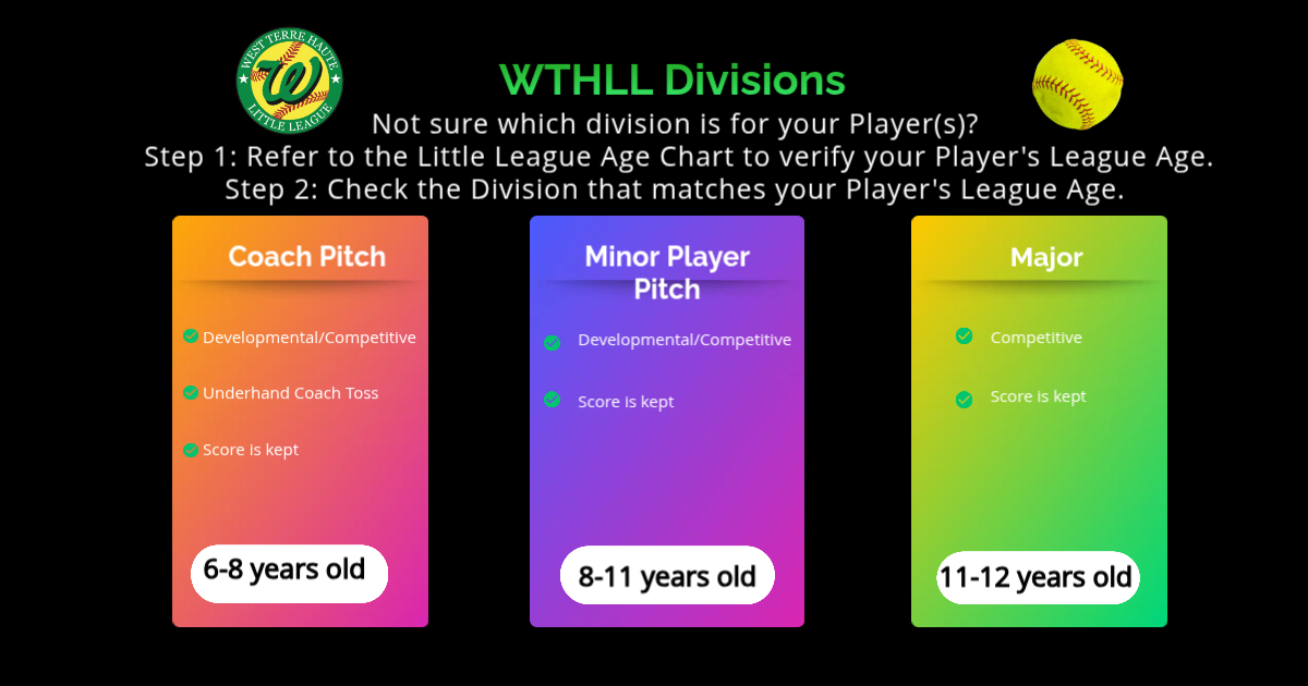| Coach Pitch/Machine Pitch | 6-8 years | Developmental/ Competitive |